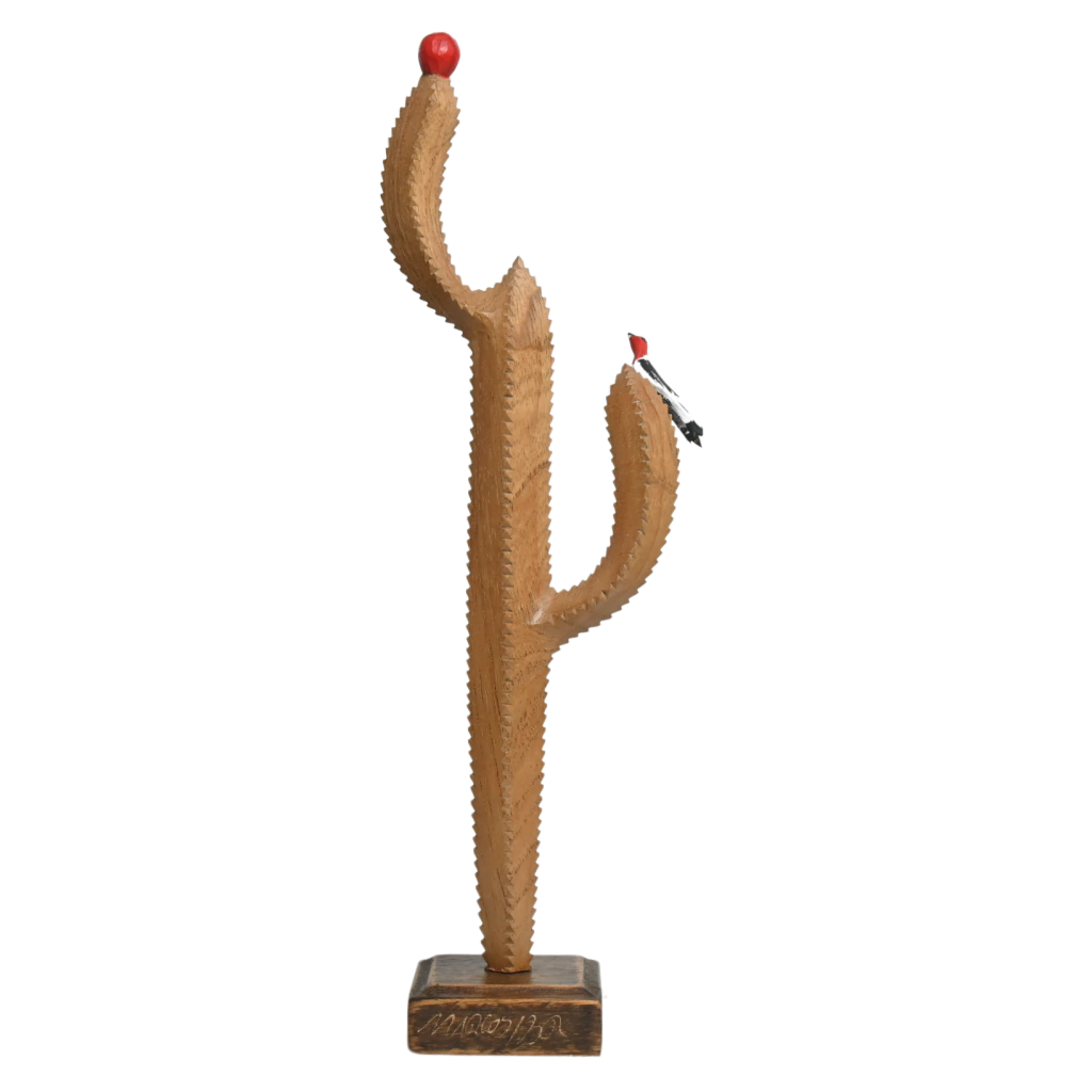 Marcos Paulo Lau da Costa, conhecido como Marcos de Sertânia, é um dos grandes nomes da escultura em madeira no sertão pernambucano. Inspirado pelas vivências no sertão e pela tradição familiar, Marcos encontrou na arte uma forma de expressar a dramaticidade da seca e a resistência do povo nordestino. Sua obra mais icônica é a cachorra “Baleia”, inspirada no clássico Vidas Secas, de Graciliano Ramos, que retrata a desolação e a força do sertão em figuras magras e expressivas. “Vivi tudo isso aí que coloco no meu trabalho”, afirma.
